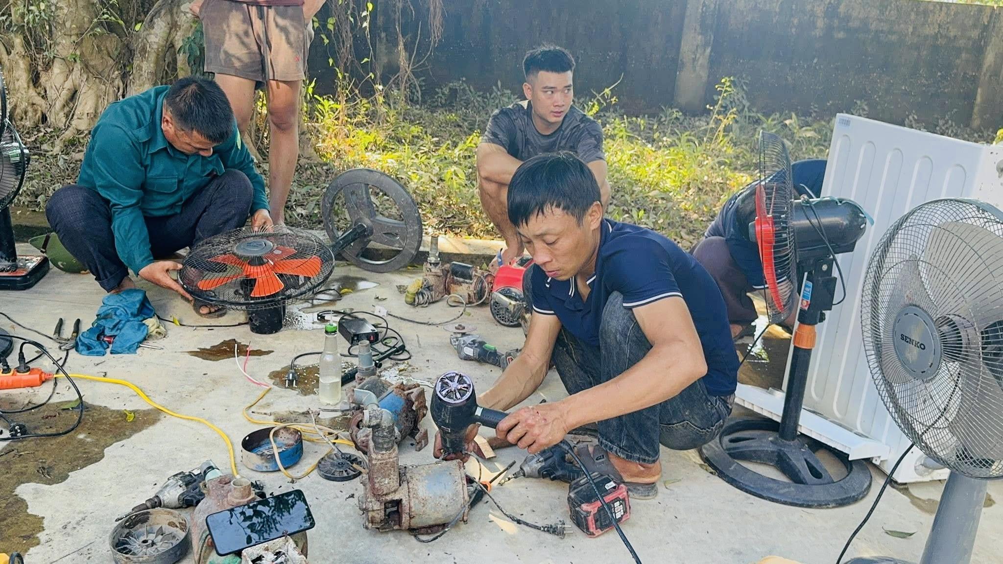 Từ những chiếc quạt cháy mô-tơ, tủ lạnh chập điện, đến máy giặt, điều hòa bị ngập nước, tất cả đều được anh và nhóm thợ tận tình khắc phục, không nhận bất kỳ khoản phí nào.