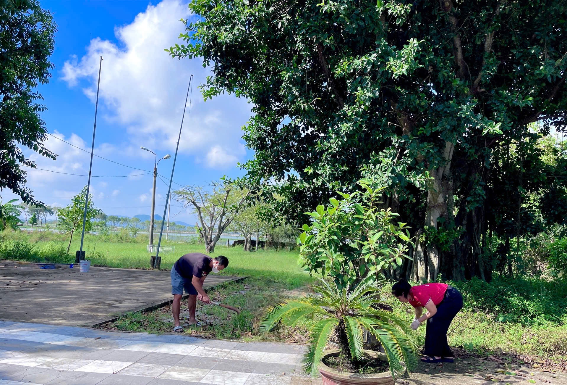 Sau phần lễ dâng hương, tập thể cán bộ, giáo viên và nhân viên đã tham gia quét dọn, chỉnh trang, chăm sóc cảnh quan trong khuôn viên di tích. Hoạt động này góp phần giữ gìn sự trang nghiêm, sạch đẹp của đền thờ, đồng thời thể hiện tinh thần trách nhiệm đối với việc bảo tồn các giá trị lịch sử, văn hóa tại địa phương.