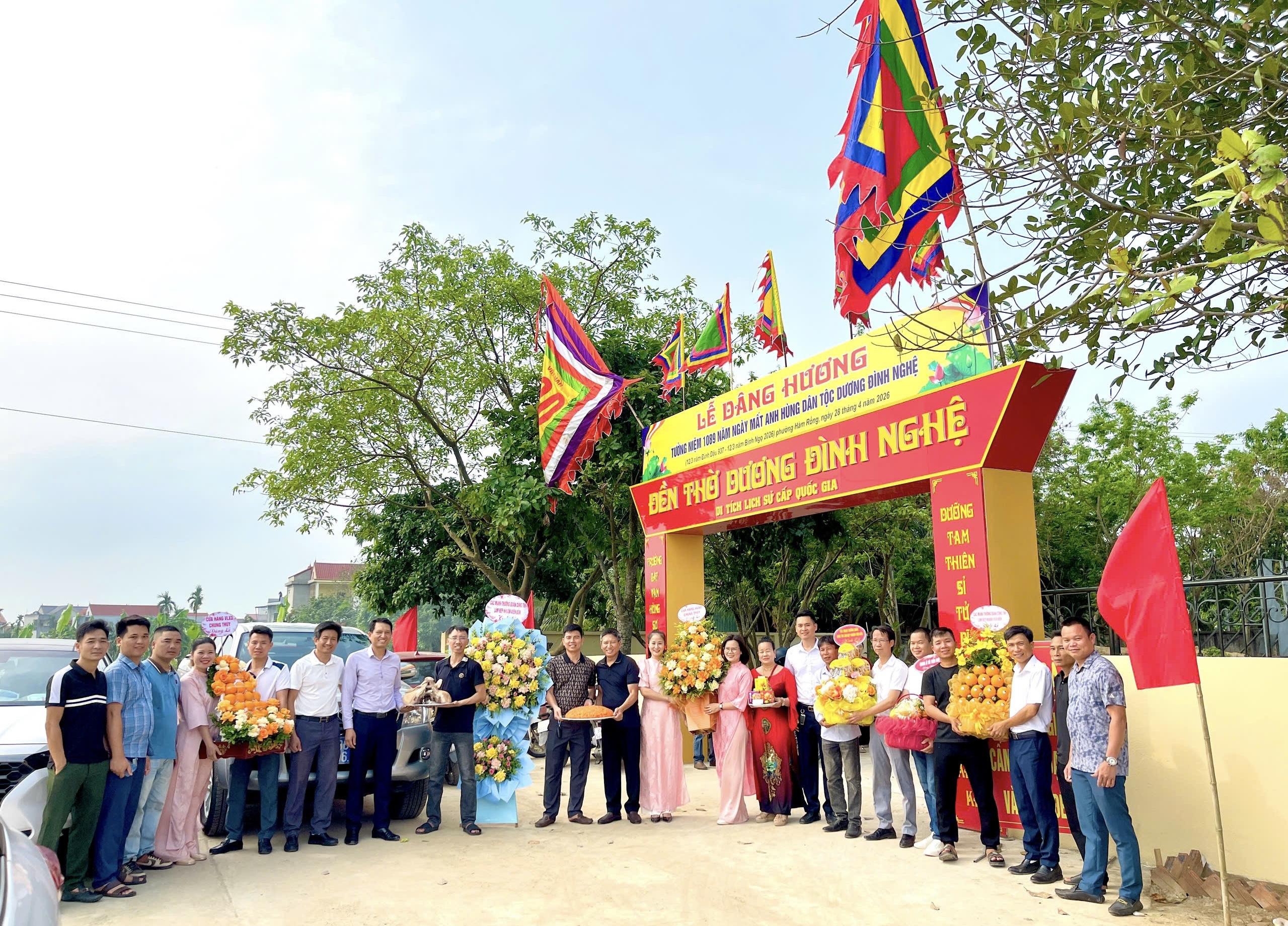 Các đại biểu, mạnh thường quân, doanh nghiệp tại đền thờ anh hùng dân tộc Dương Đình Nghệ