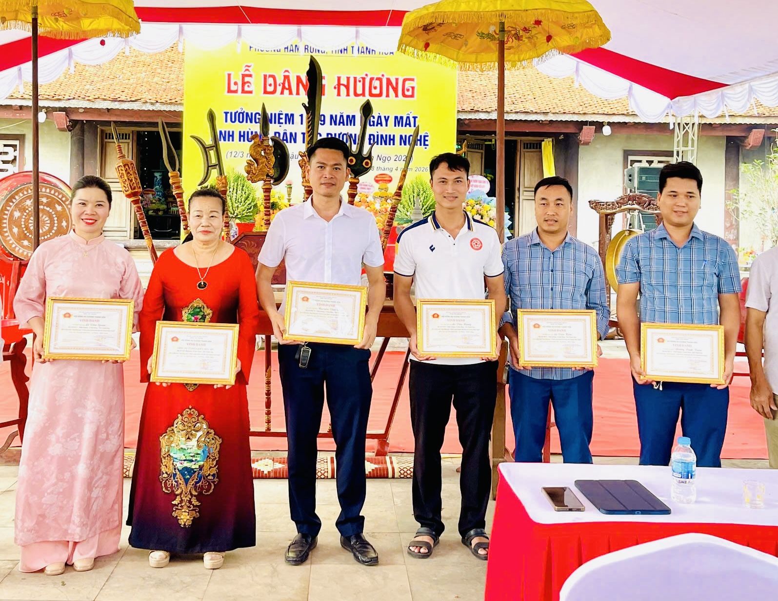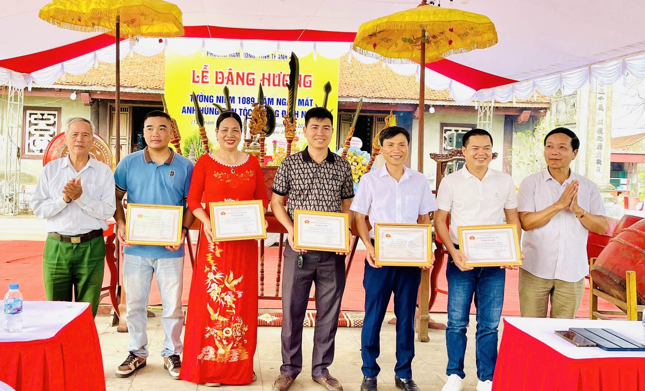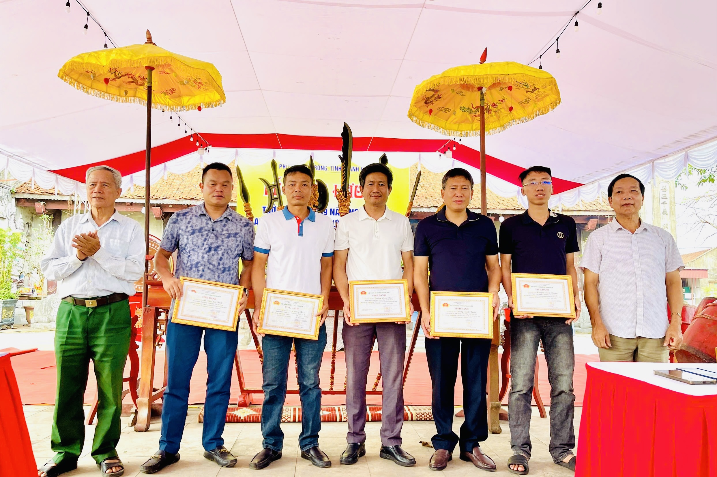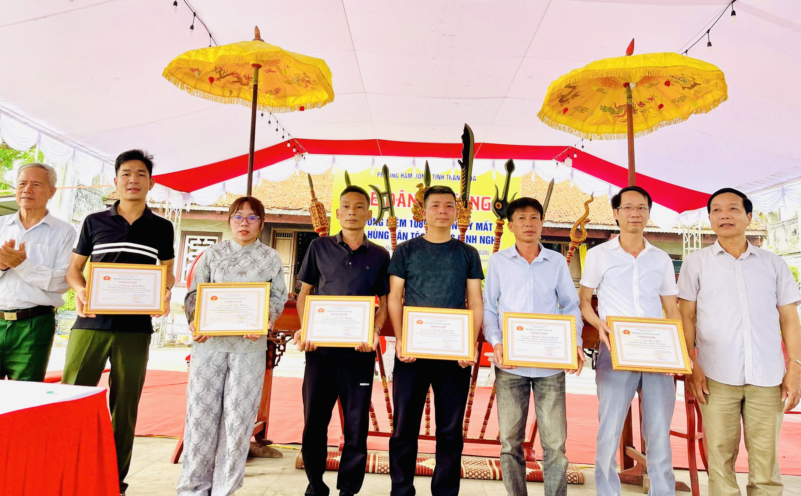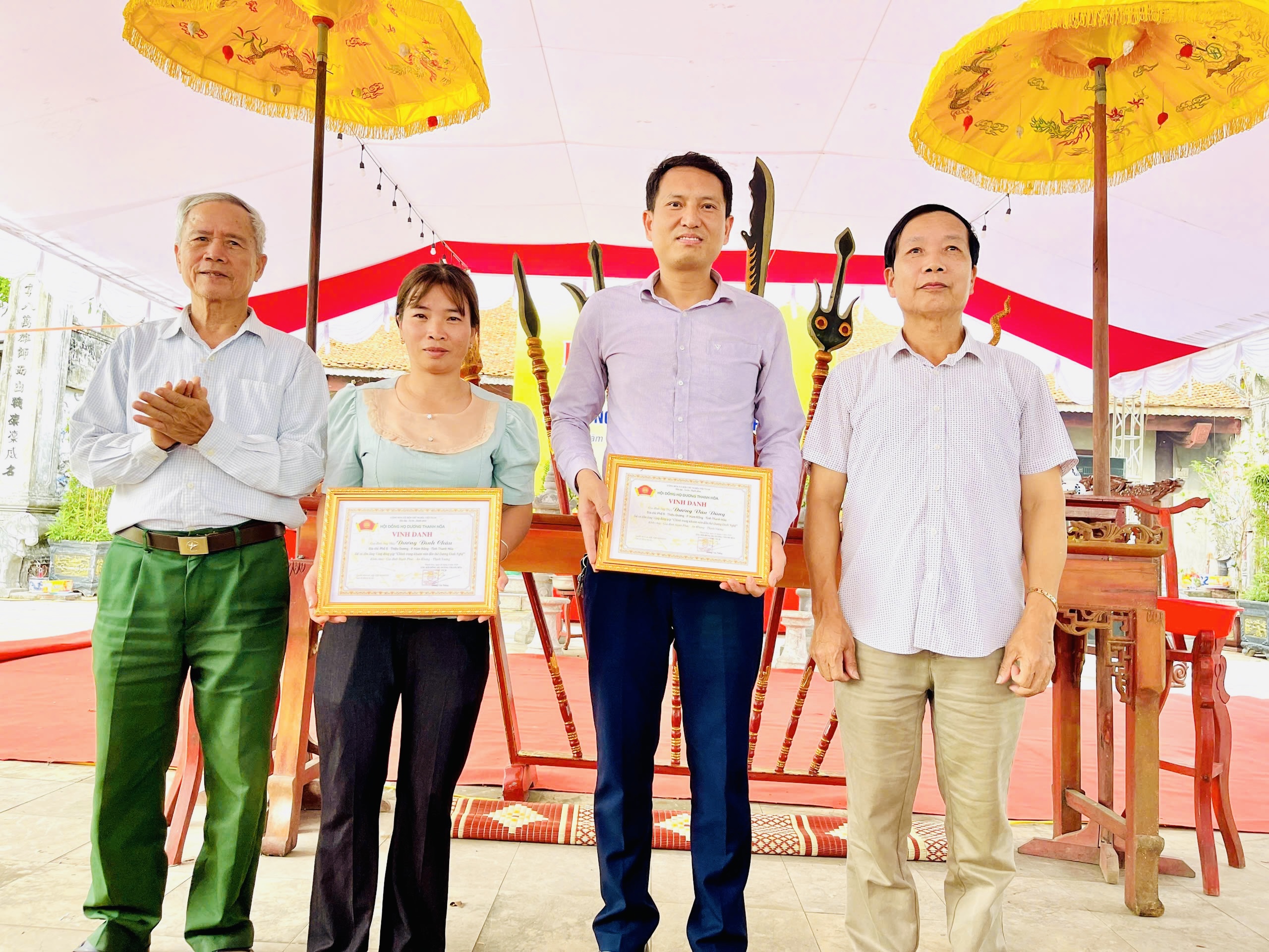 Hội đồng Họ Dương tỉnh Thanh Hoá trao bằng vinh danh 33 cá nhân và 02 tập thể đã có tấm lòng vàng đóng góp “Chỉnh trang khuôn viên đền thờ anh hùng dân tộc Dương Đình Nghệ”.